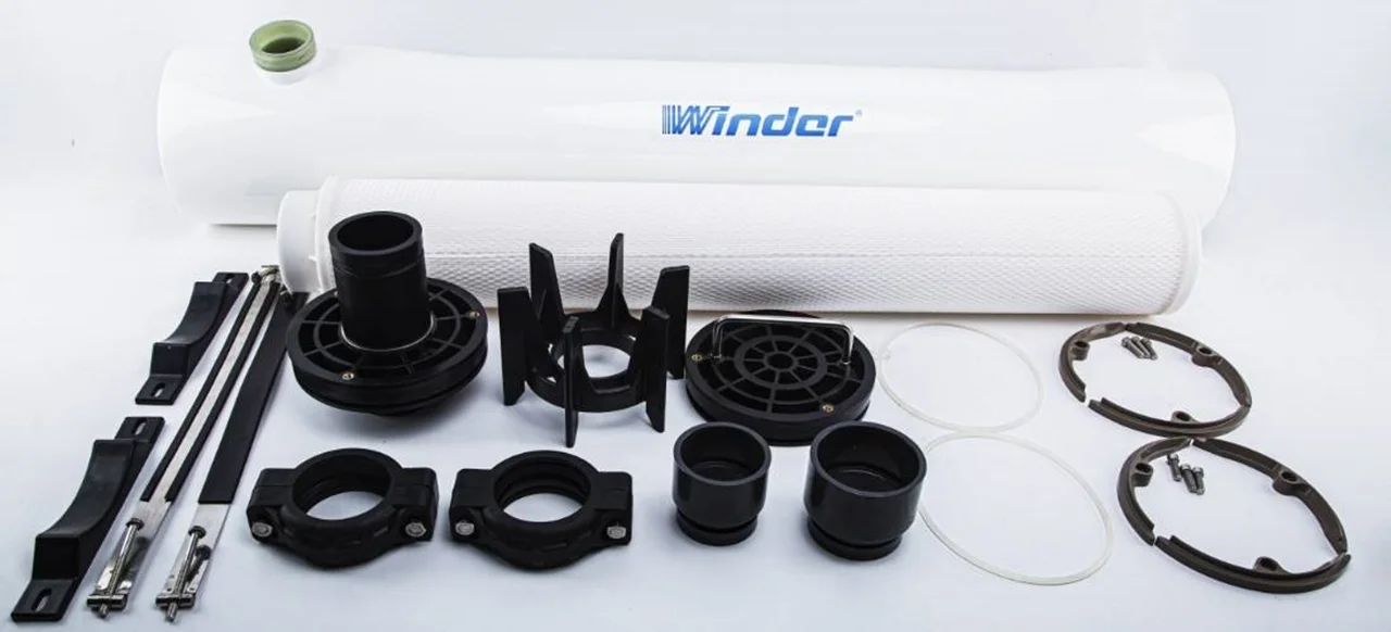 - هوزینگ فیلتر کارتریج جریان بالا FRP برند Winder 8" 150 PSI (پورت جانبی ورودی، پورت انتهایی خروجی)