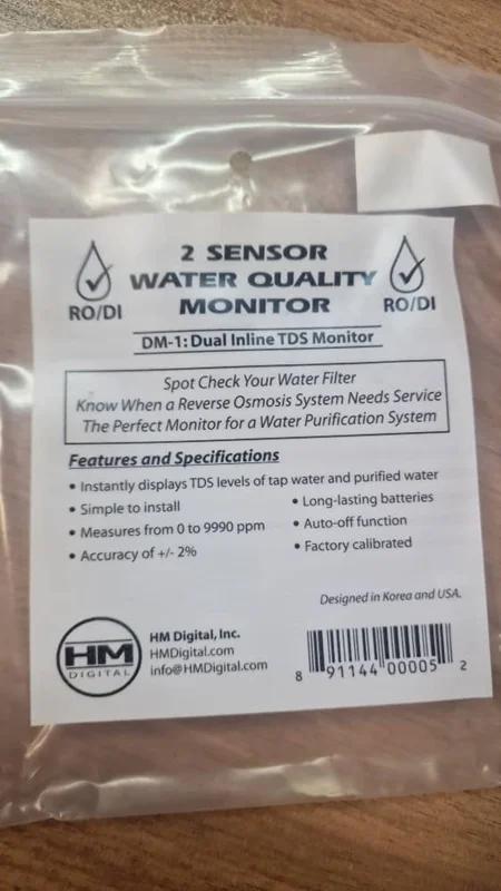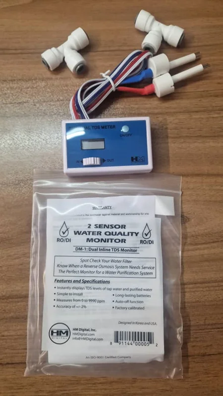 DM-1 یک مانیتور TDS با کیفیت تجاری است که میزان TDS آب ورودی (خوراک) و آب محصول (خروجی) یک سیستم تصفیه آب را در هر زمان اندازهگیری میکند. با کابلهای محافظتشده و پیامهای تشخیصی، این دستگاه مقاوم برای سیستمهای تصفیه آب اسمز معکوس (RO) و آب دیونیزه (DI) ایدهآل است و در کاربردهایی مانند آب شرب، تصفیه آب، آکواریومها، هیدروپونیک و بسیاری دیگر عملکرد خوبی دارد.